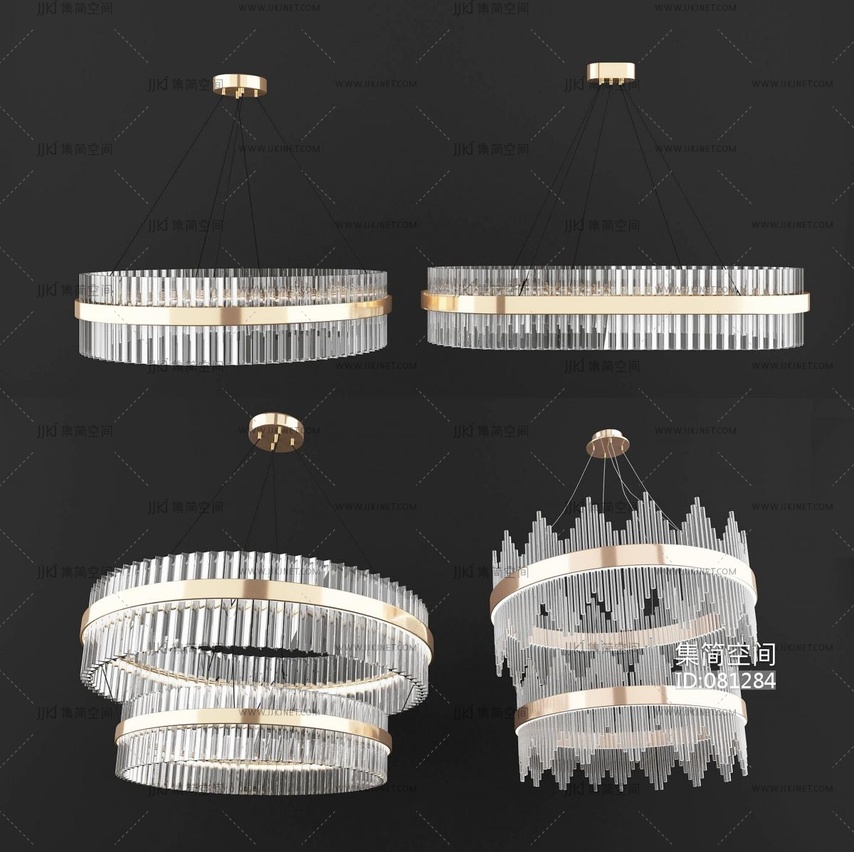 新中式水晶吊灯组合 3d模型下载 [模型ID:81284]