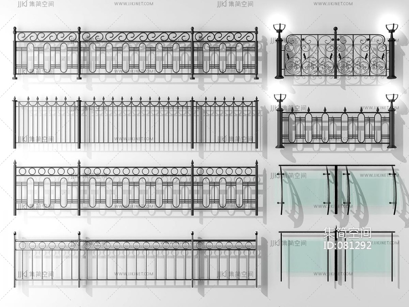 欧式铁艺玻璃护栏,围栏,栏杆扶手, 3d模型下载 [模型ID:81292]