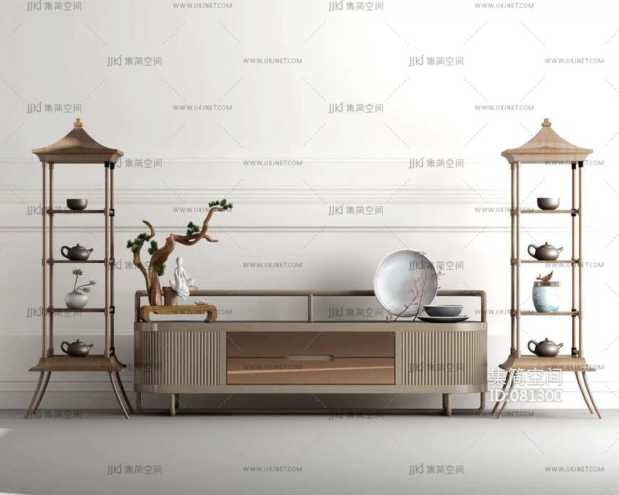新中式现代轻奢法式电视柜摆件根雕,装饰柜 3d模型下载 [模型ID:81300]