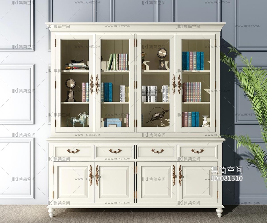 美式书柜,酒柜,古典书籍 3d模型下载 [模型ID:81310]