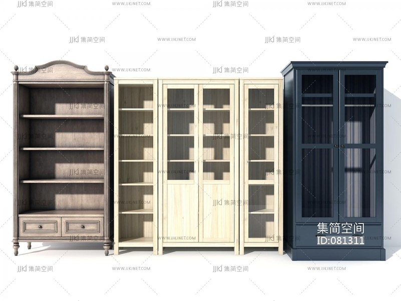 欧式美式书柜,酒柜 3d模型下载 [模型ID:81311]