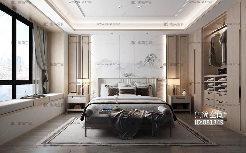 新中式卧室,主卧室 3d模型下载 [模型ID:81349]