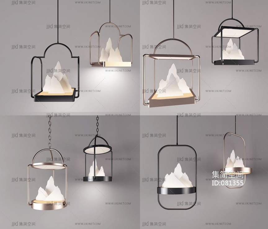 山脉造型小吊灯落地灯 3d模型下载 [模型ID:81355]