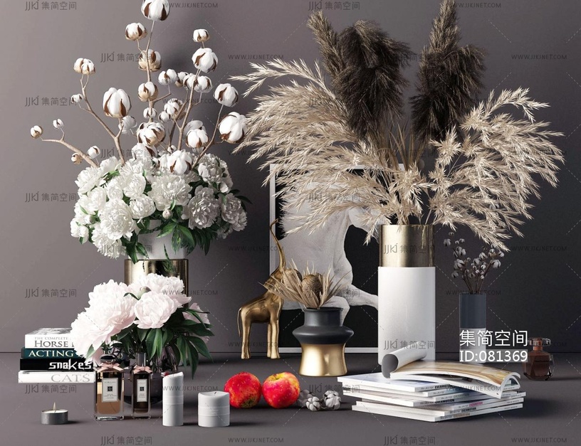 后现代轻奢摆件插花,花瓶饰品 3d模型下载 [模型ID:81369]