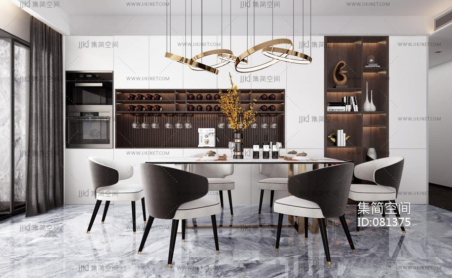 轻奢餐厅,餐桌椅,开放开敞厨房橱柜 3d模型下载 [模型ID:81375]