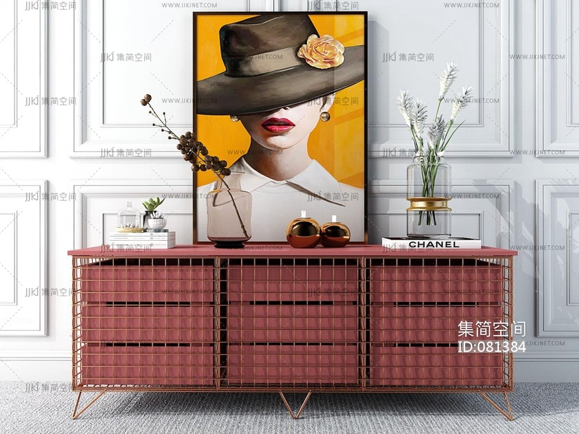 美式玄关柜摆台装饰画3D模型下载3d模型下载