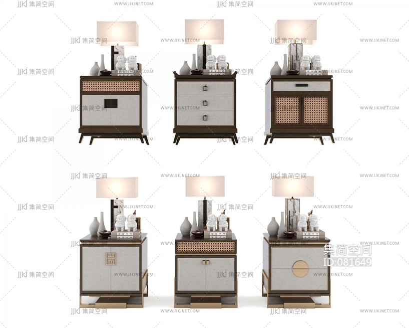 新中式床头柜,台灯, 3d模型下载 [模型ID:81649]