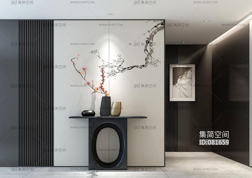 新中式条案 端景台,格栅3d模型 3d模型下载