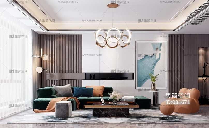 轻奢客厅,沙发茶几吊灯 3d模型下载 [模型ID:81671]