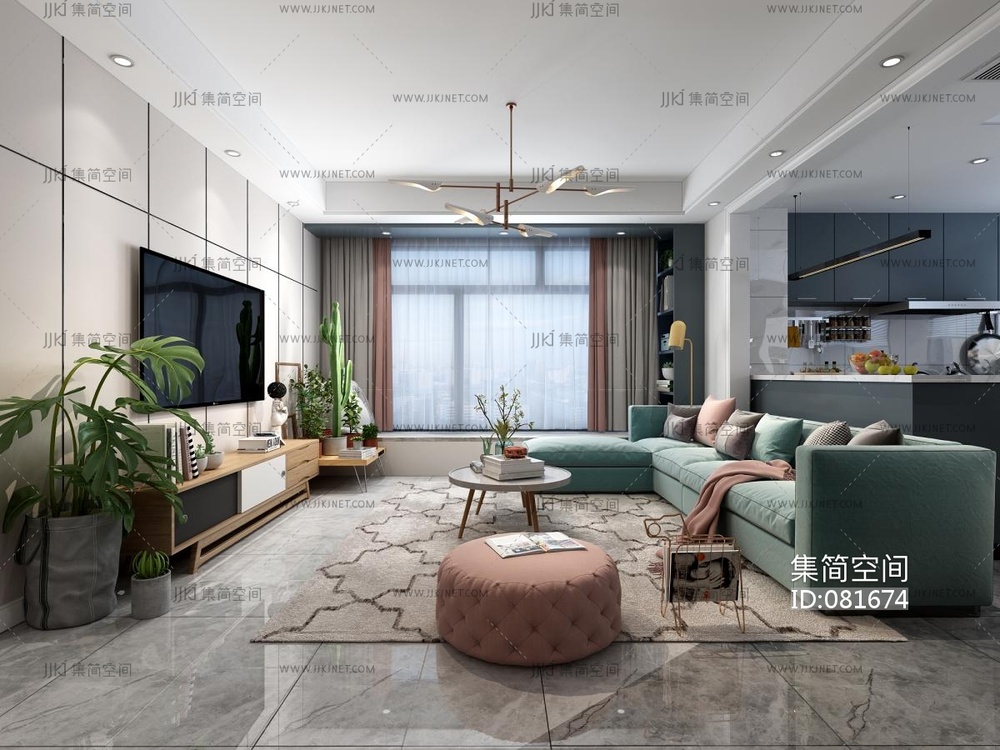 北欧现代轻奢小清新客餐厅 3d模型下载 [模型ID:81674]