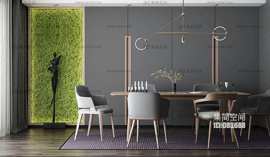 北欧现代实木餐桌椅 3d模型下载 [模型ID:81688]