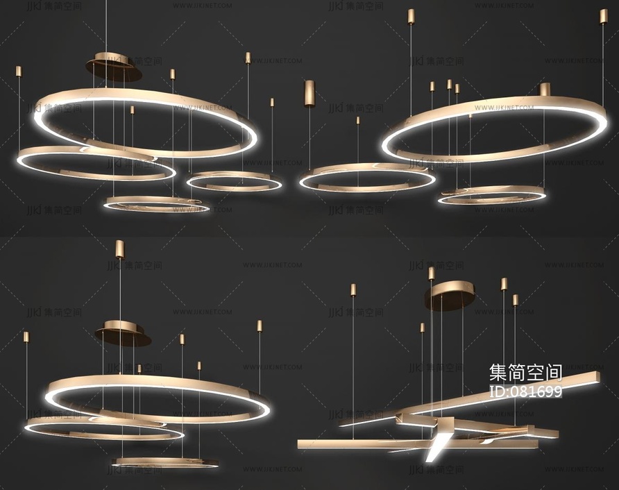 轻奢铁艺圆环吊灯组合 3d模型下载 [模型ID:81699]