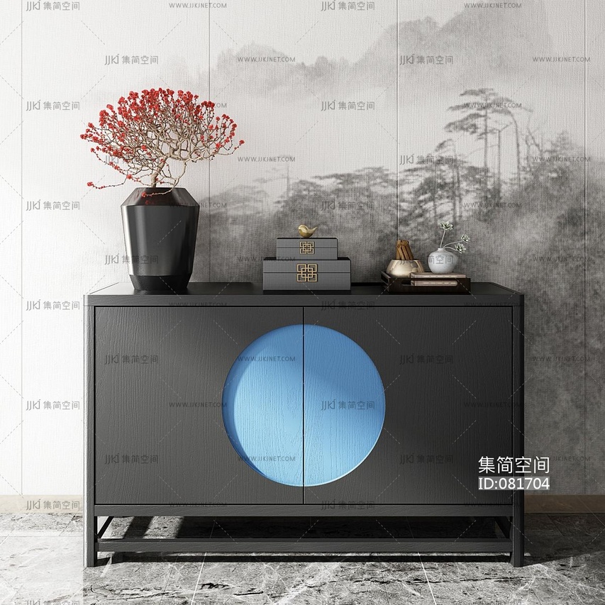 新中式玄关柜,端景柜,台 3d模型下载 [模型ID:81704]