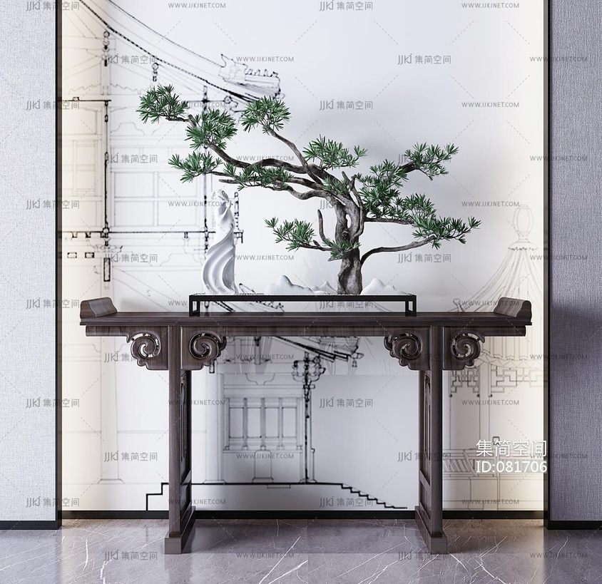 新中式玄关柜, 3d模型下载 [模型ID:81706]