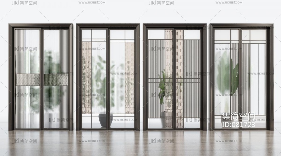 现代铝合金玻璃推拉门 3d模型下载 [模型ID:81723]