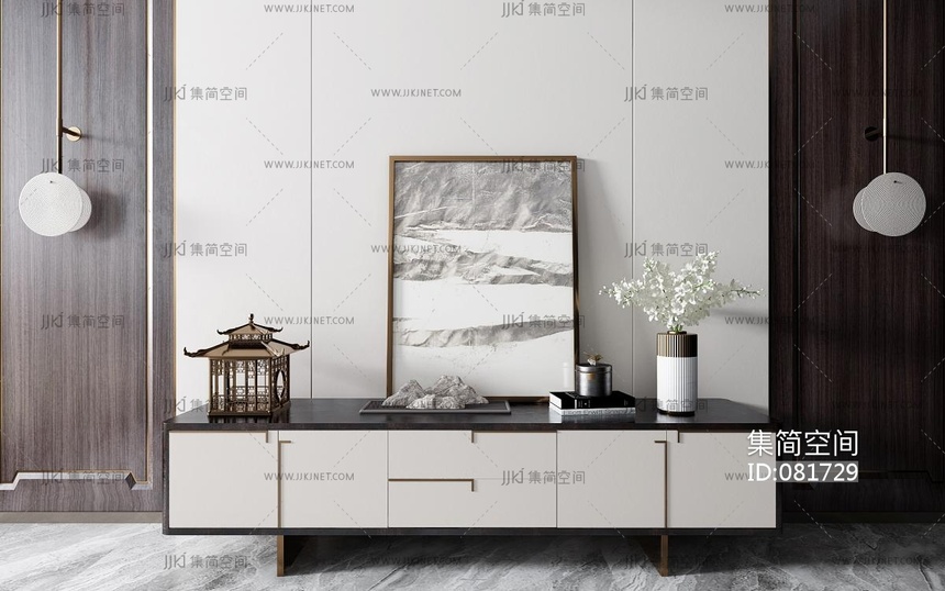 现代轻奢电视柜,花瓶摆件 3d模型下载 [模型ID:81729]