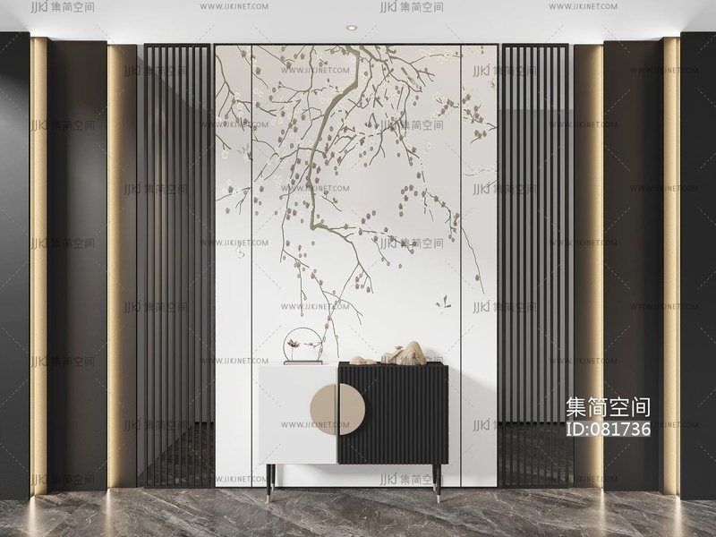 新中式玄关柜,餐边柜 3d模型下载 [模型ID:81736]