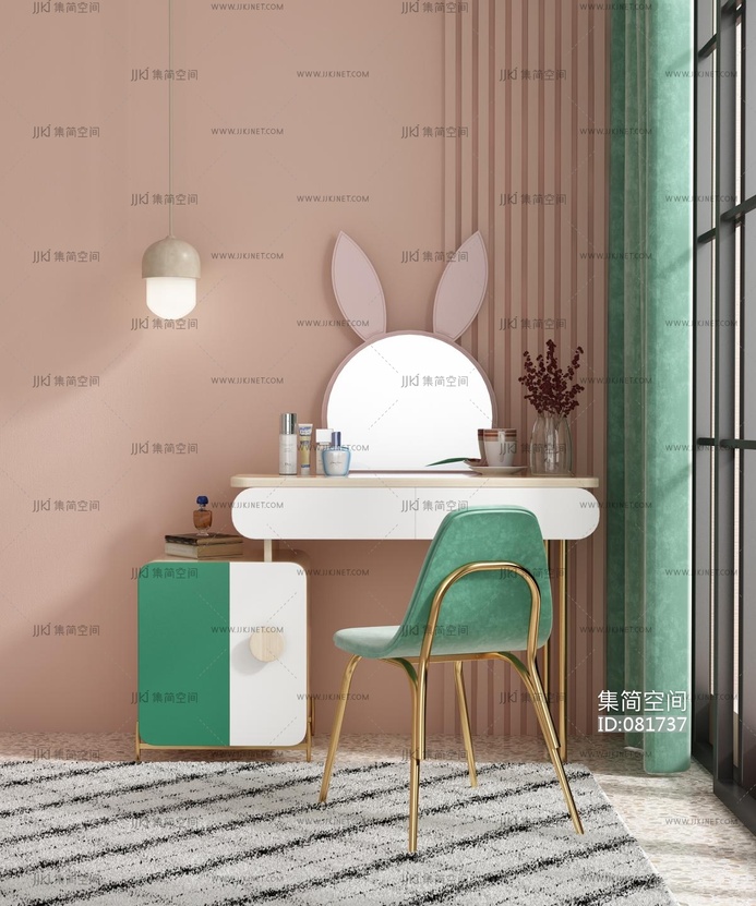 现代儿童梳妆台,化妆台,梳妆柜 3d模型下载 [模型ID:81737]