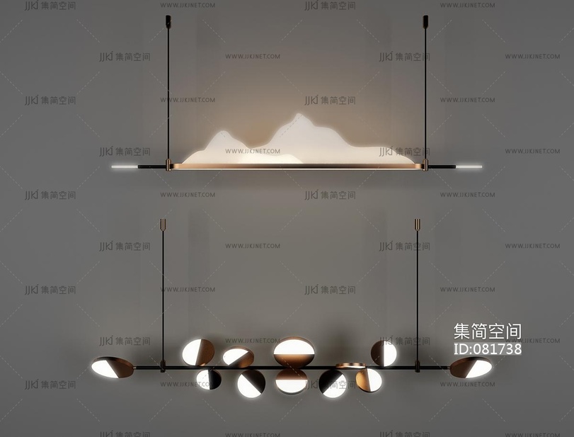 新中式长条,山脉造型吊灯 3d模型下载 [模型ID:81738]