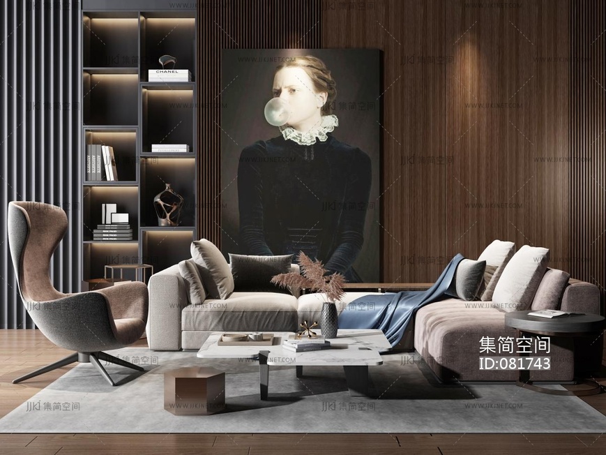 轻奢沙发茶几,单人椅子 3d模型下载 [模型ID:81743]