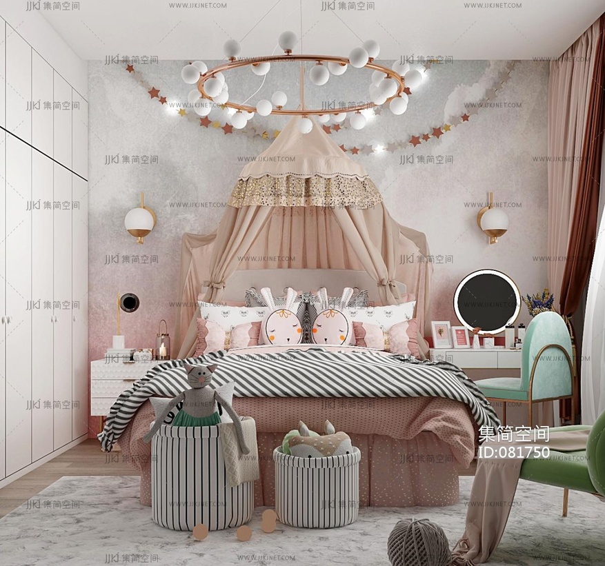 北欧现代女儿房,女孩房,儿童房 3d模型下载 [模型ID:81750]