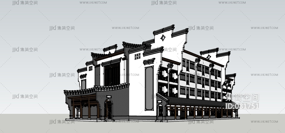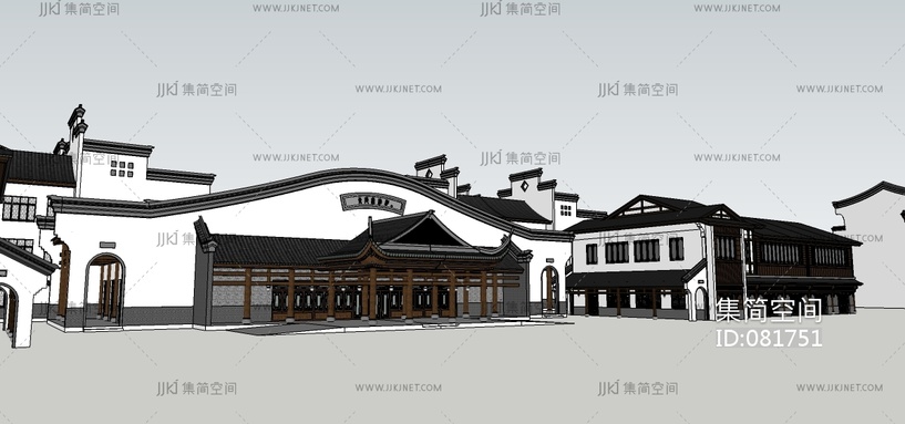 新中式徽派中式古建建筑,马头墙古镇 su草图模型下载 [模型ID:81751]