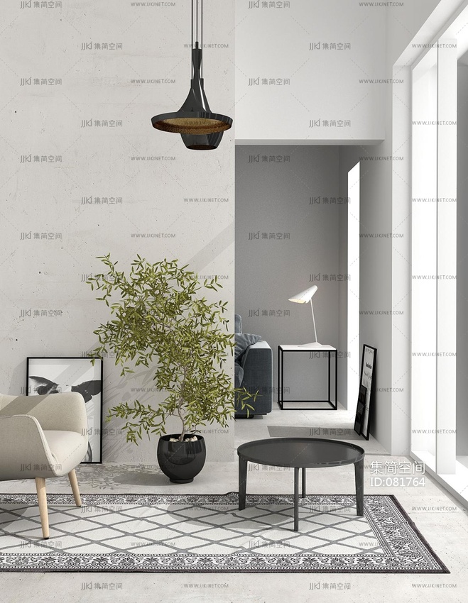 现代单椅边几组合 3d模型下载 [模型ID:81764]