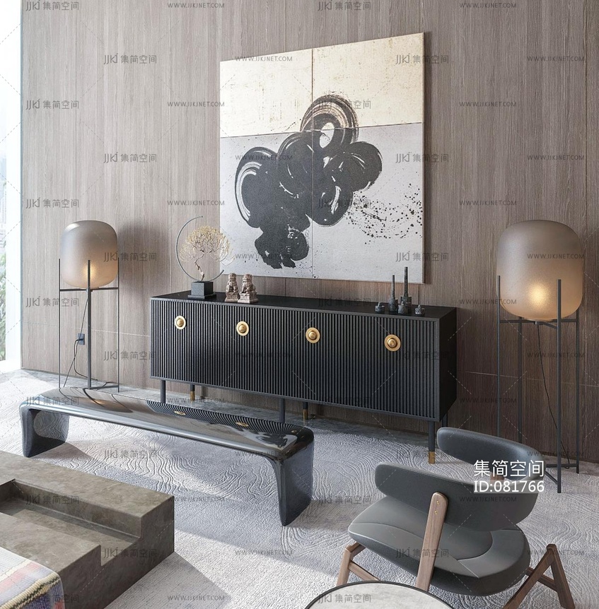新中式电视柜落地灯,茶几 3d模型下载 [模型ID:81766]