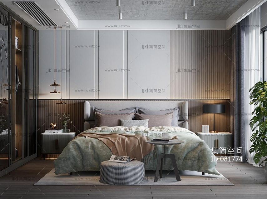 现代轻奢卧室,双人床,床头柜 3d模型下载 [模型ID:81774]