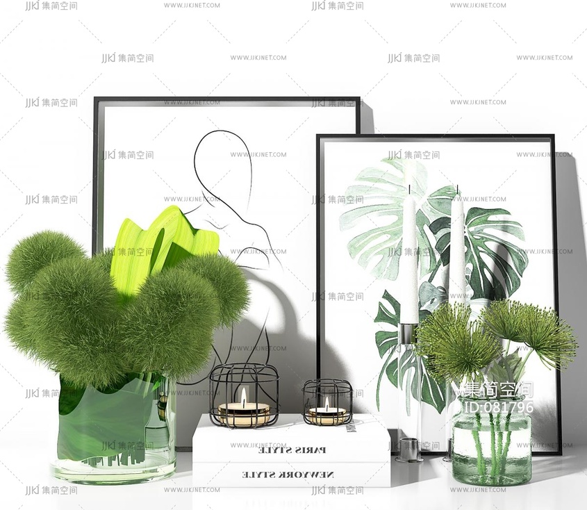 现代绿植花瓶摆件 3d模型下载 [模型ID:81796]
