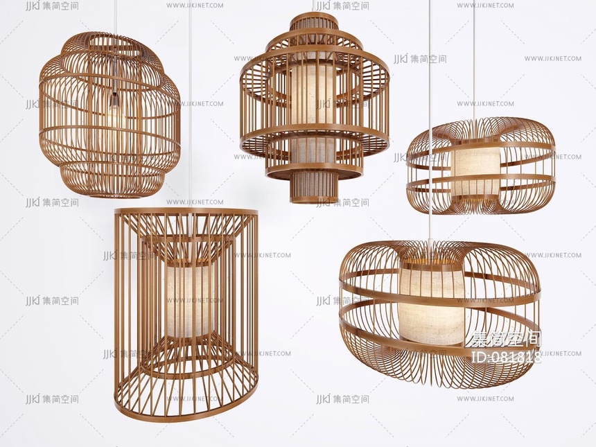 日式竹编,编织吊灯 3d模型下载 [模型ID:81818]