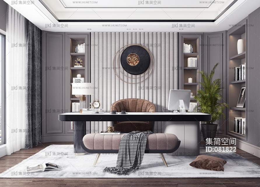 轻奢书房,书桌椅, 3d模型下载 [模型ID:81822]