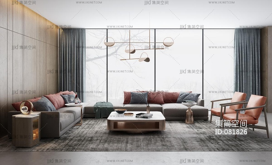 北欧现代布艺沙发组合 3d模型下载 [模型ID:81826]