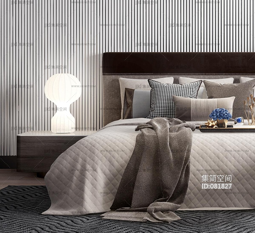 现代轻奢新古典双人床, 3d模型下载 [模型ID:81827]