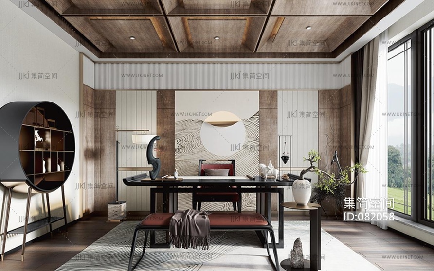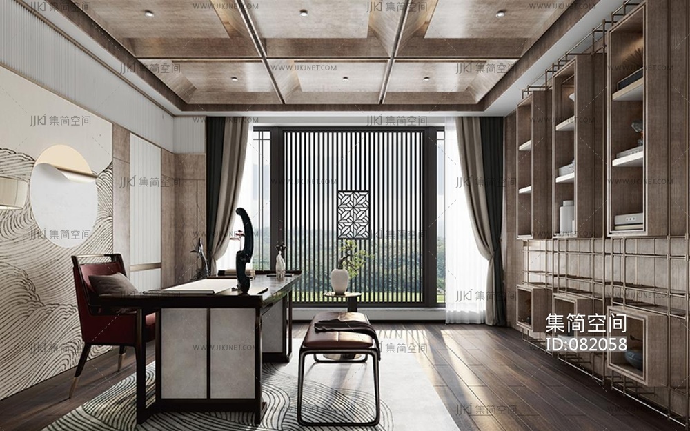 新中式别墅书房,书桌椅 3d模型下载 [模型ID:82058]