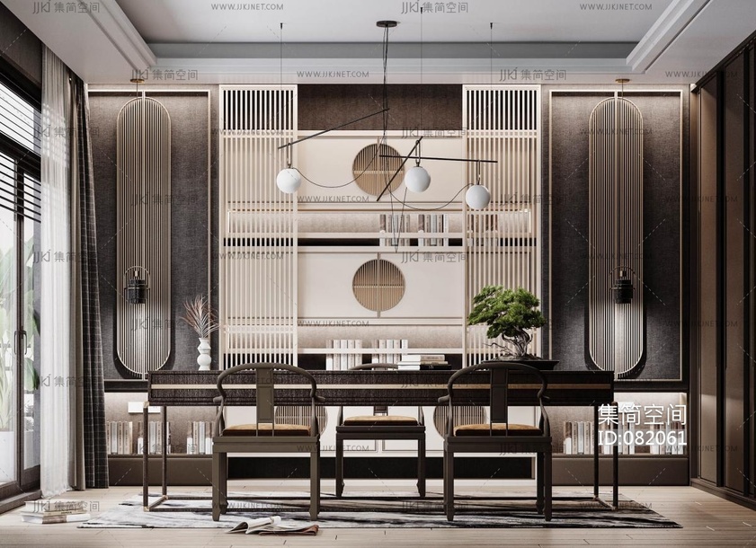 新中式书房茶室,茶桌椅 3d模型下载 [模型ID:82061]