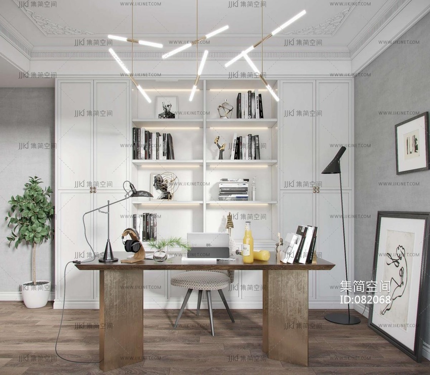 简欧式,法式现代,书房 3d模型下载 [模型ID:82068]