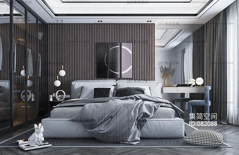 现代轻奢卧室, 3d模型下载 [模型ID:82088]
