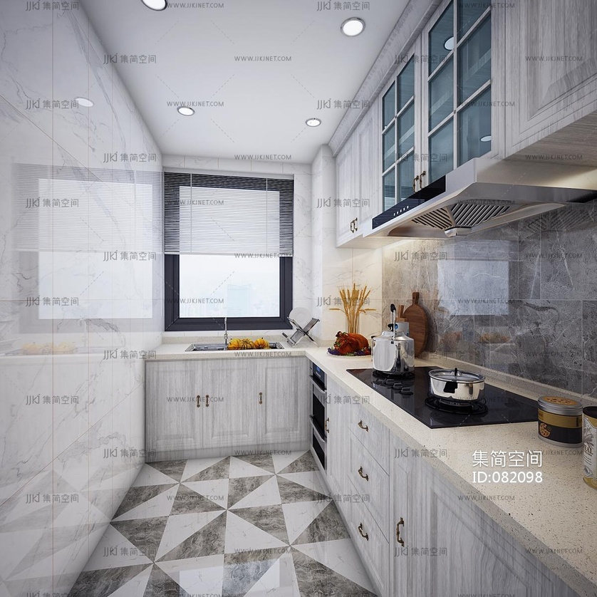 简欧厨房橱柜 3d模型下载 [模型ID:82098]