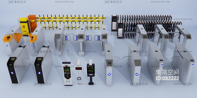 现代电动伸缩门_自动收缩门__学校推拉收缩_收费杆_闸机3D模型3d模型下载