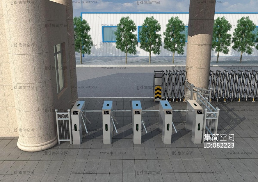 现代电动伸缩门_自动收缩门__学校推拉收缩_收费杆_闸机3D模型3d模型下载