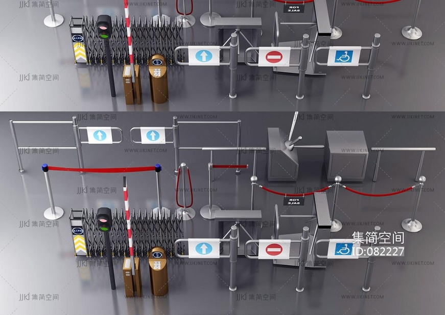 现代电动伸缩门_自动收缩门__学校推拉收缩_收费杆_闸机3D模型3d模型下载