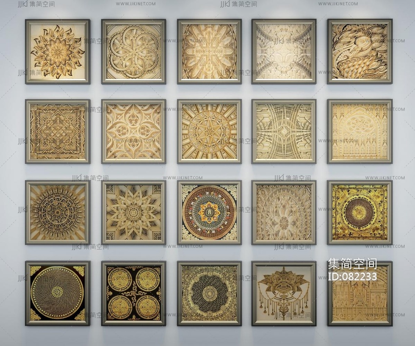 后现代欧式几何浮雕装饰画 3d模型下载 [模型ID:82233]