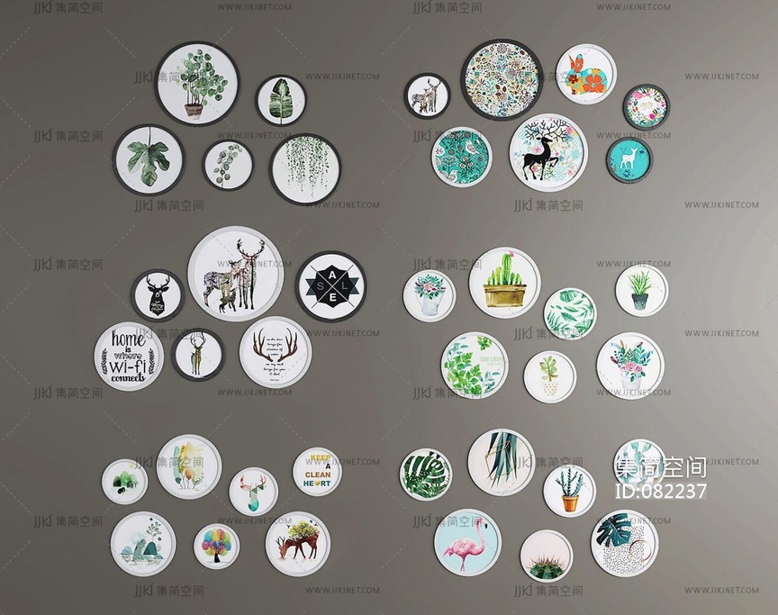 现代圆形挂画,装饰画 3d模型下载 [模型ID:82237]