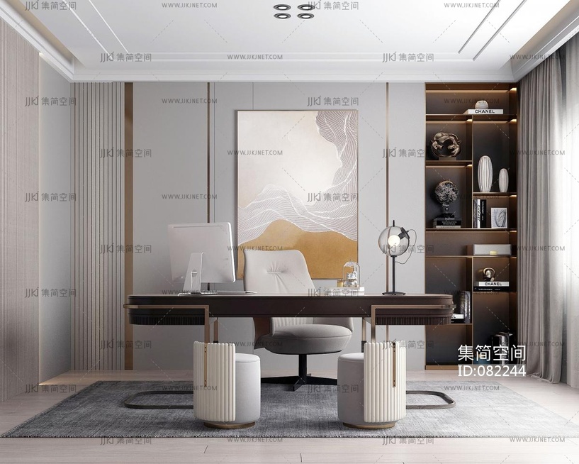 轻奢书房,书桌椅,坐凳坐墩 3d模型下载 [模型ID:82244]
