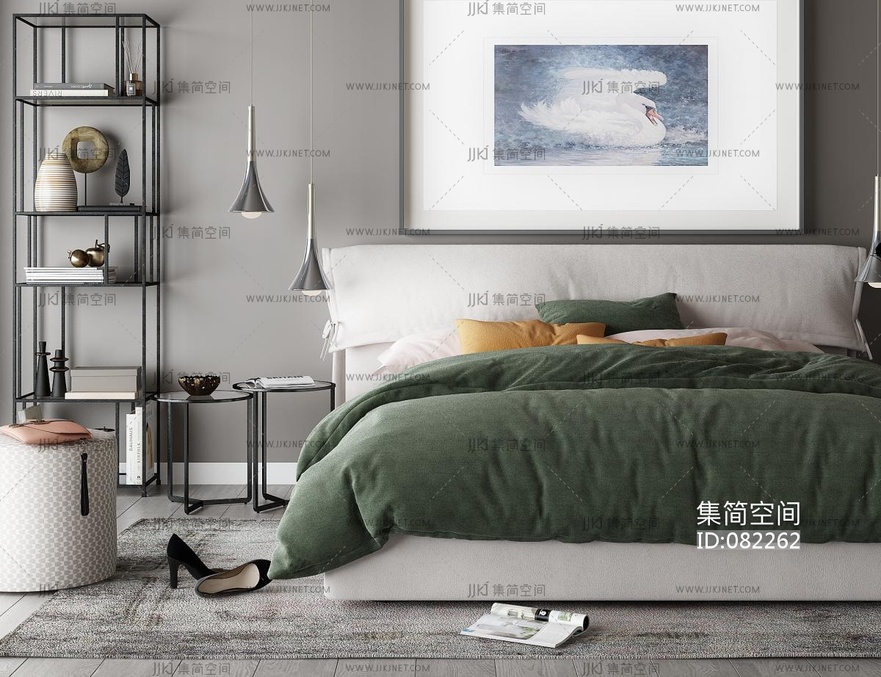 布艺双人床,书架 3d模型下载 [模型ID:82262]