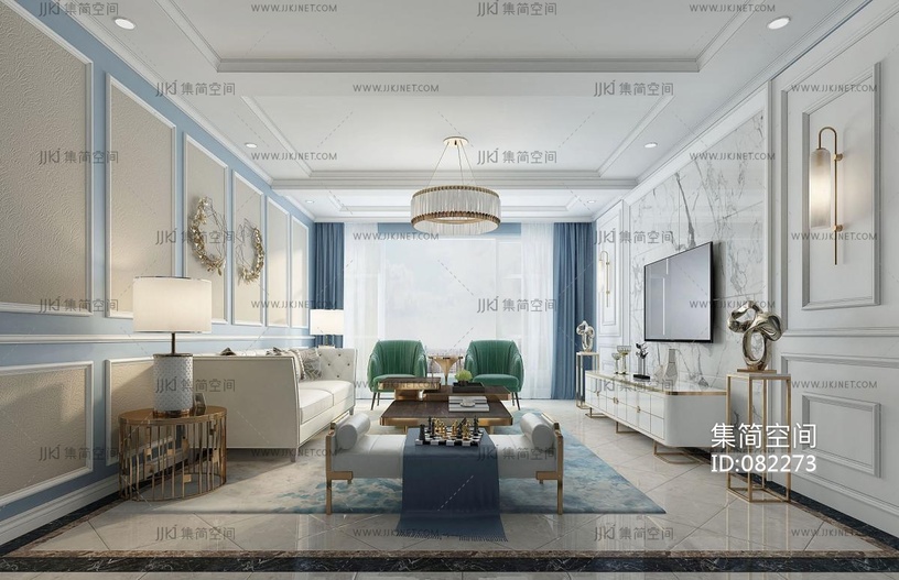 简欧式客厅,国际象棋 3d模型下载 [模型ID:82273]