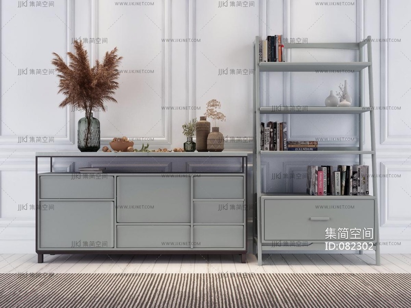 北欧简约边柜书架 3d模型下载 [模型ID:82302]