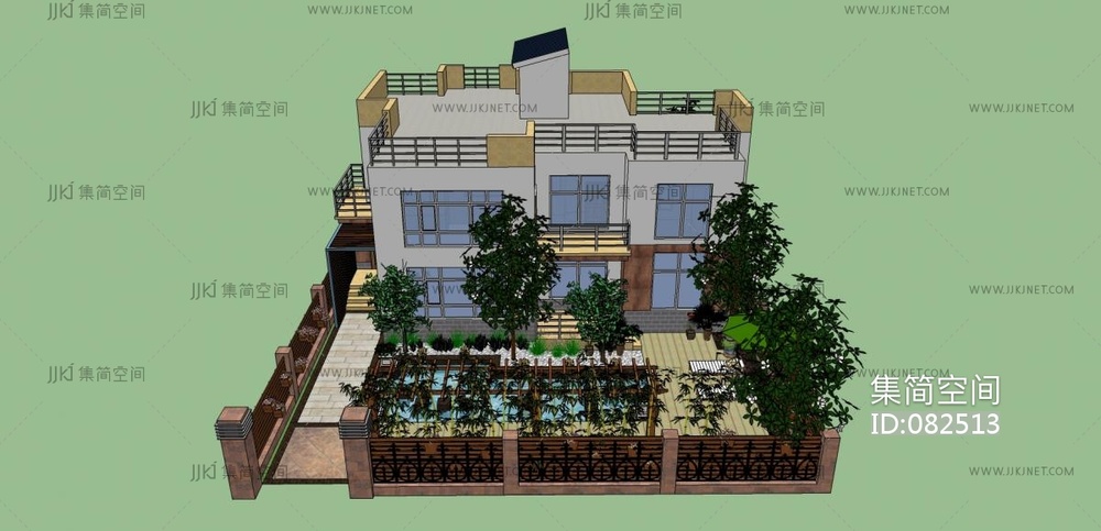 小别墅庭院景观SU模型-0830 su草图模型下载