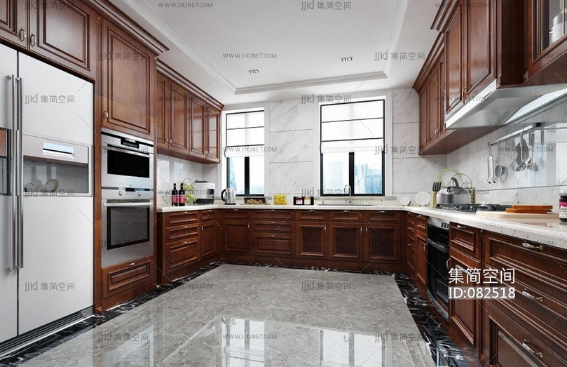 美式,欧式厨房,橱柜 3d模型下载 [模型ID:82518]